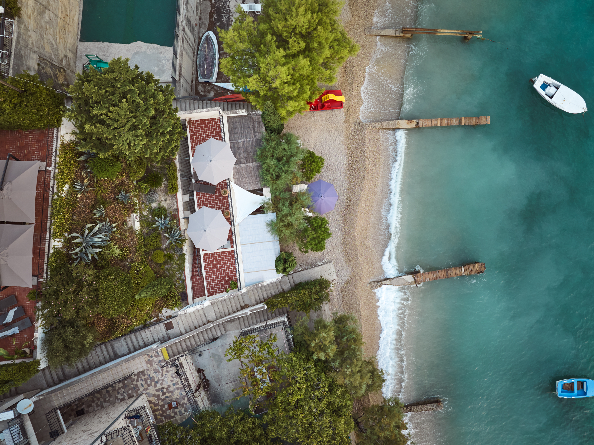 In the middle Dalmatia, not far away from Split and just 3 km from Omis, there is a fable. A small romantic place Stanici – Tice. Fantastic micro location, surrounded by autochthonous plants and just on the beach, there is Villa Aestas. From villa’s balcony’s stretches marvelous panning on the crystal blue sea, beautiful coast and Brac island.